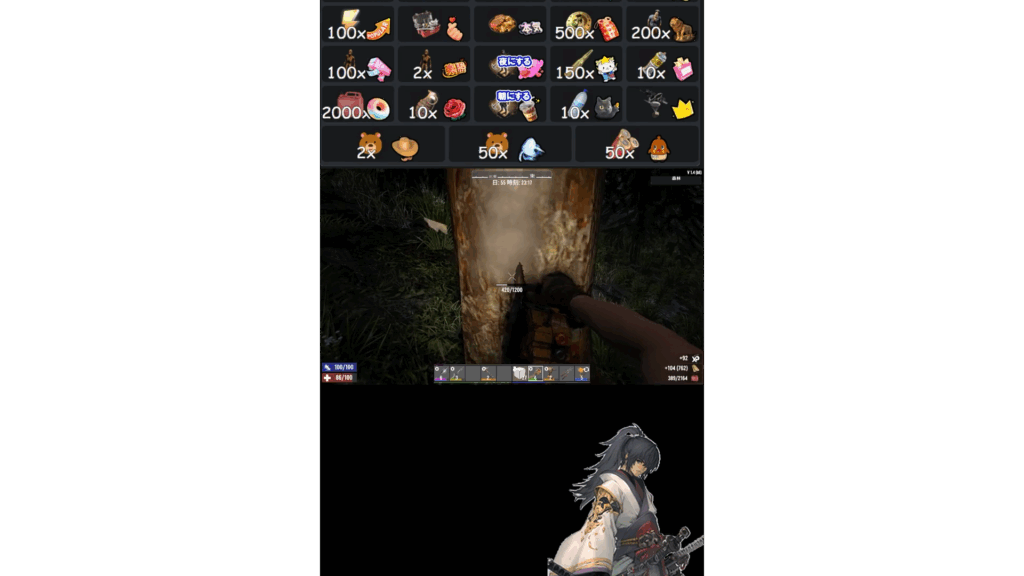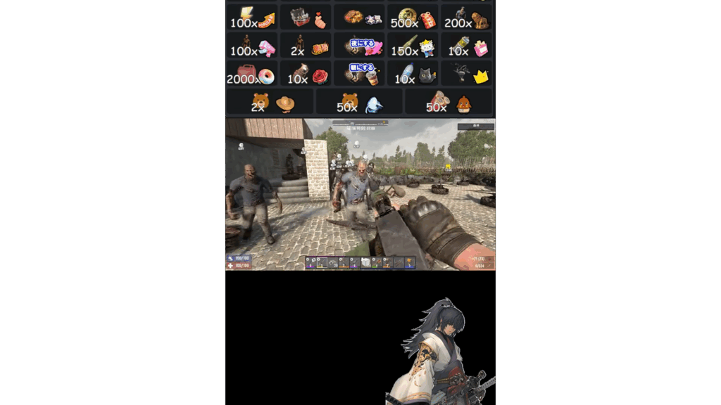 プレイヤーを見つけるとゆっくりと歩いてきますが、妨害配信はリスナーさんがギフトを投げると急に近くにゾンビが出てきたりします。